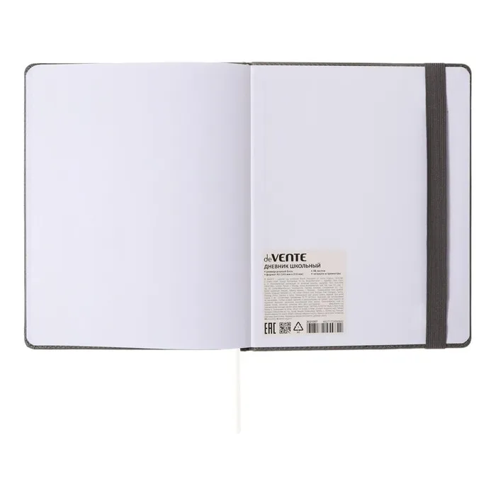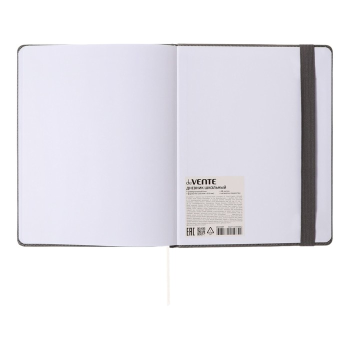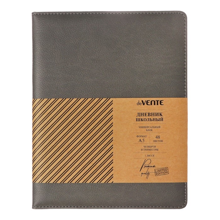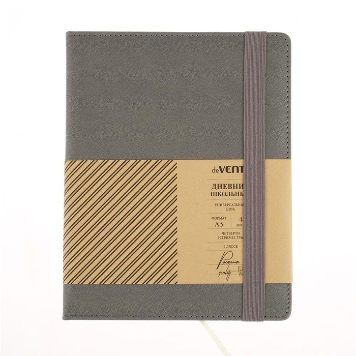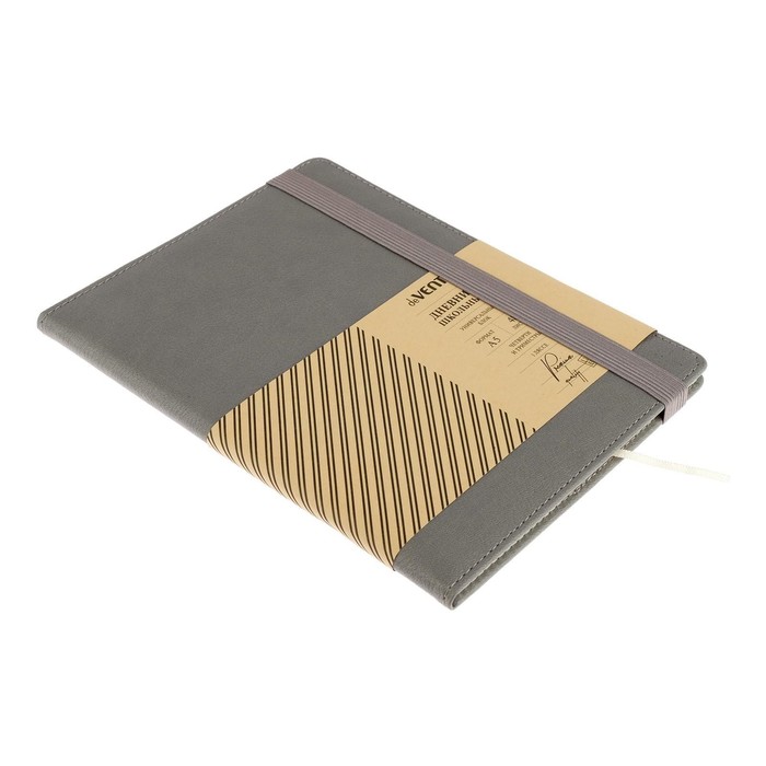 Дневник "deVENTE. Grey" универсальный блок, офсет 1 краска, белая бумага 80 г/м², твердая обложка из искусственной кожи с поролоном, вертикальная резинка, отстрочка, 1 ляссе