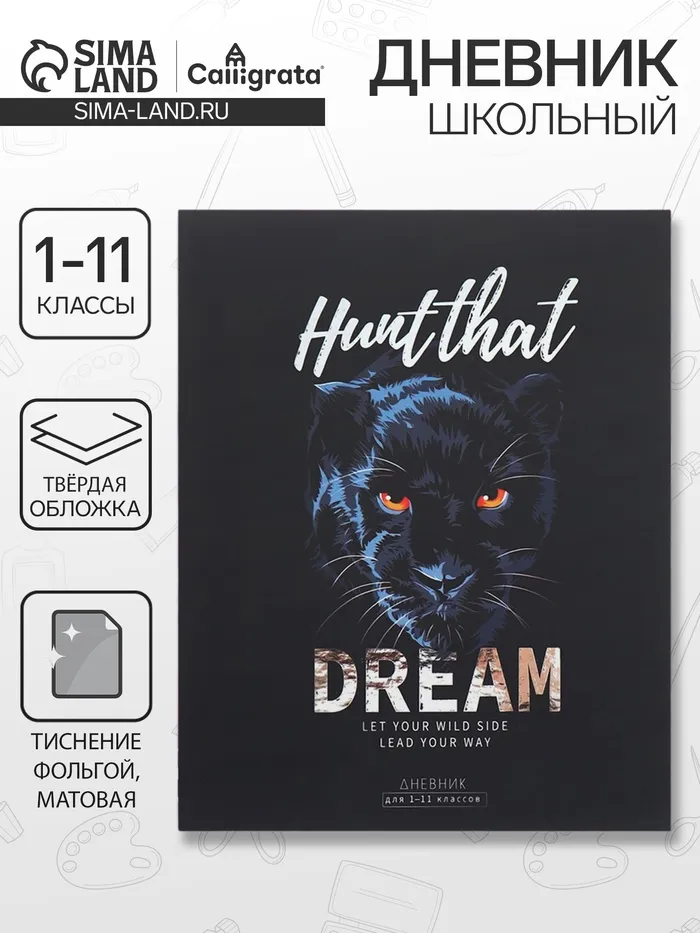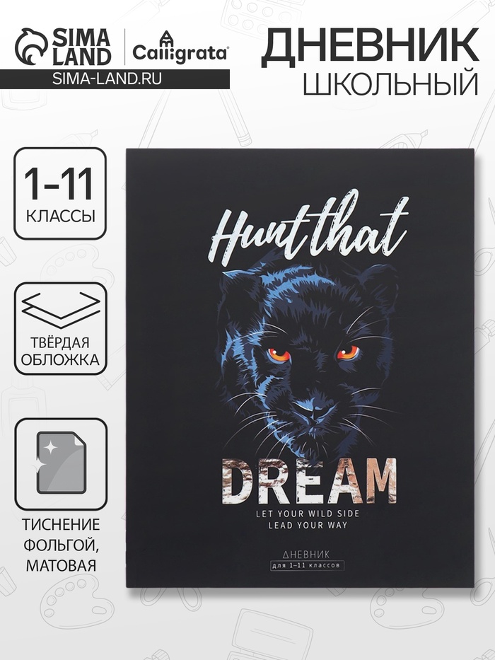Дневник школьный для 1-11 классов HUNT THAT DREAM, твёрдая обложка, матовая ламинация, фольгирование, 40 листов — Характеристики
