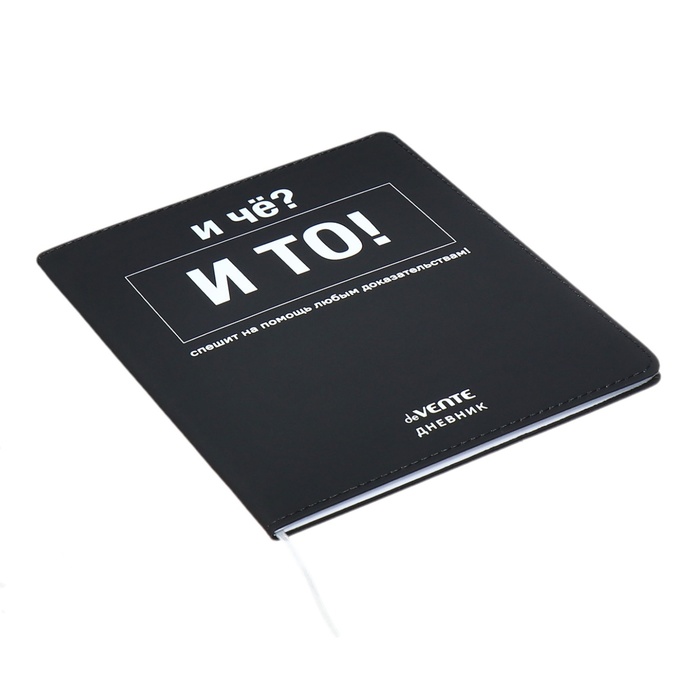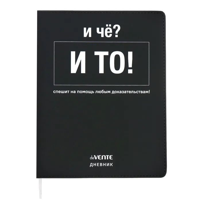Дневник "deVENTE. И чё?" универсальный блок, 48 листов, белая бумага 80 г/м², печать в 1 краску, гибкая обложка из искусственной кожи, шелкография, отстрочка, 1 ляссе