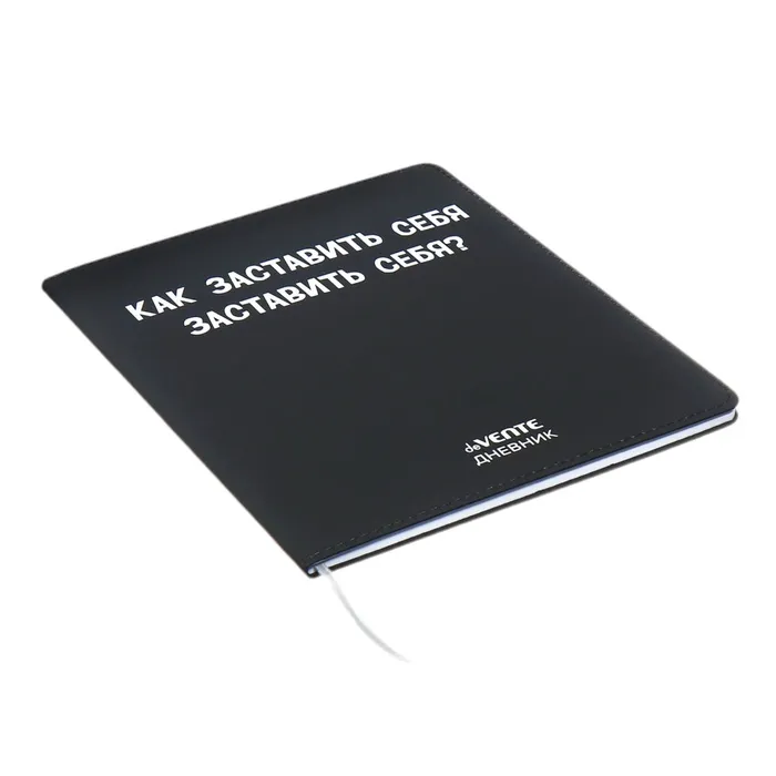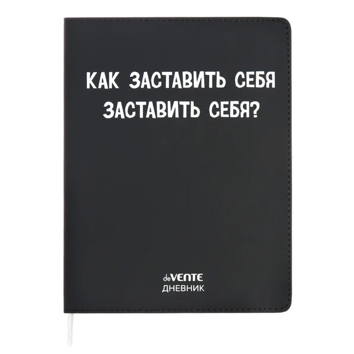 Дневник "deVENTE. Как заставить себя заставить себя?" универсальный блок, 48 листов, белая бумага 80 г/м², печать в 1 краску, гибкая обложка из искусственной кожи, шелкография, отстрочка, 1 ляссе