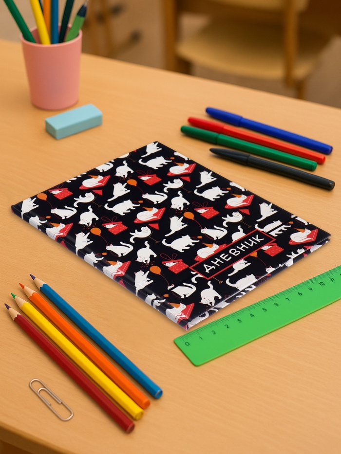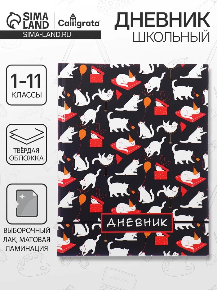 Дневник школьный для 1-11 классов, «Котята. Паттерн», твёрдая обложка 7БЦ, матовая ламинация, выборочный лак, 40 листов — Характеристики