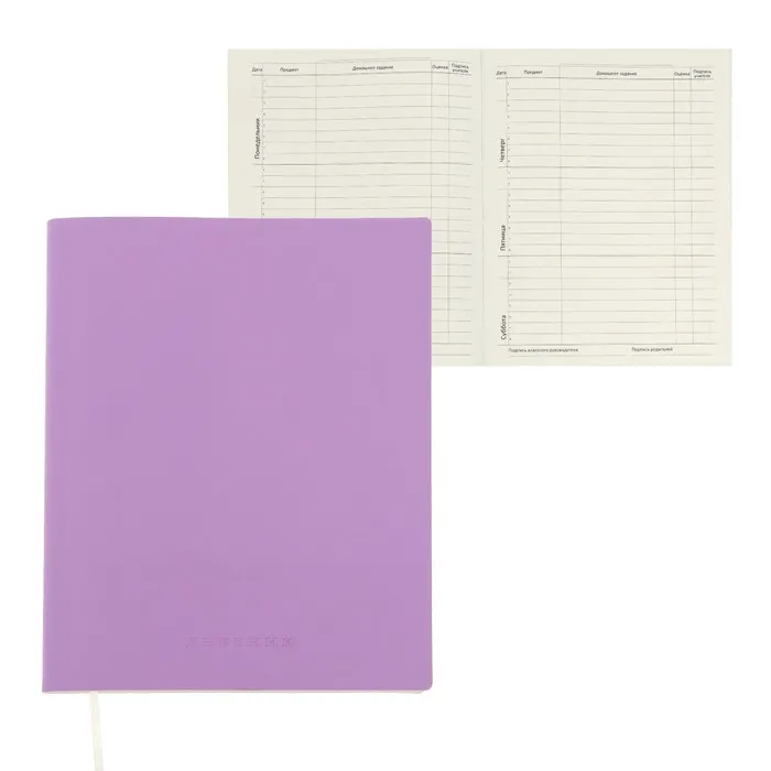 Дневник школьный для 1-11 классов Lilac soft touch, мягкая обложка, искусственная кожа, ляссе, 80 г/м² — Характеристики