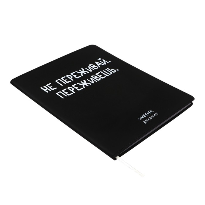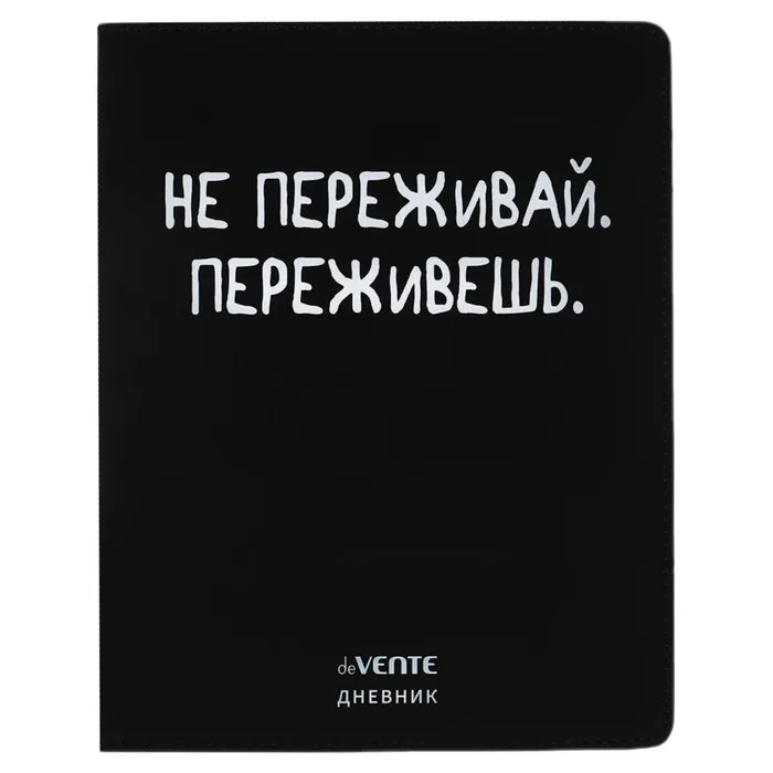 Дневник "deVENTE. Не переживай" универсальный блок, 48 листов, белая бумага 80 г/м², печать в 1 краску, гибкая обложка из искусственной кожи, шелкография, отстрочка, 1 ляссе.