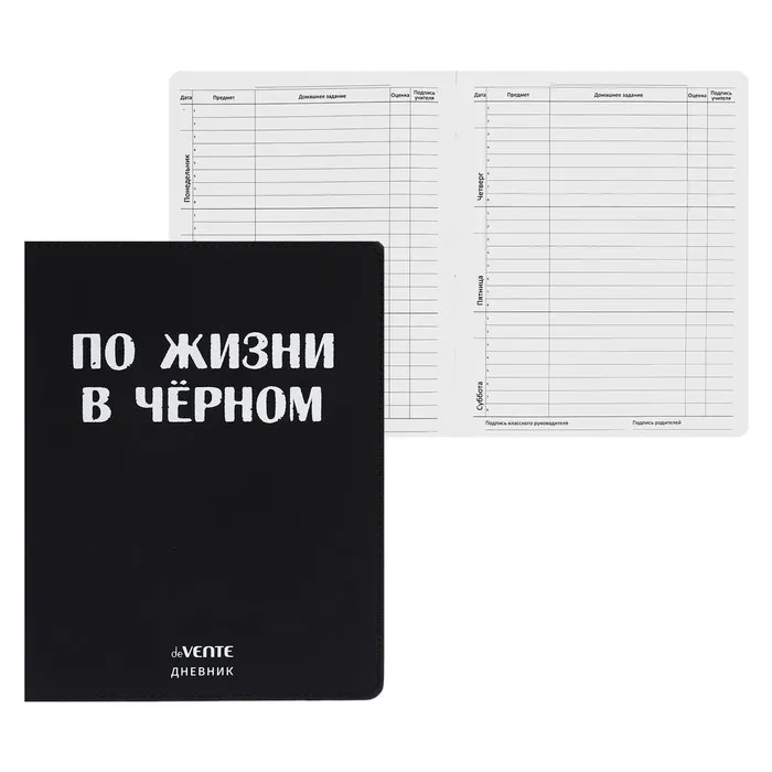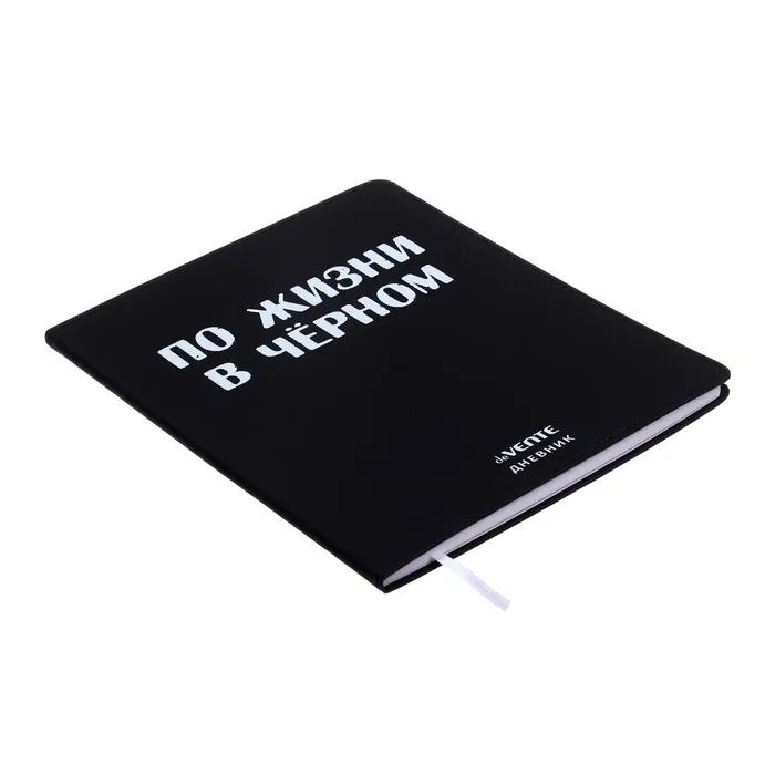 Дневник "deVENTE. По жизни в чёрном" универсальный блок, 48 листов, белая бумага 80 г/м², печать в 1 краску, гибкая обложка из искусственной кожи, шелкография, отстрочка, 1 ляссе