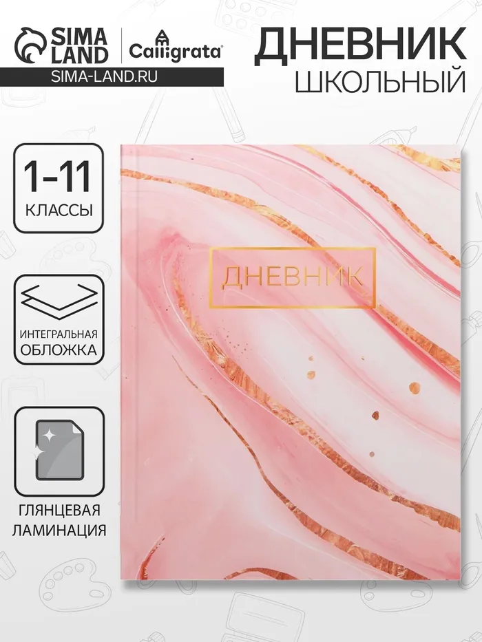 Дневник школьный для 1-11 классов, «Розовый мрамор», интегральная (гибкая) обложка, глянцевая ламинация, 40 листов — Характеристики