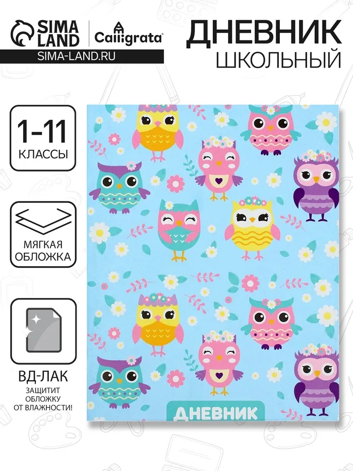 Дневник школьный для 1-11 классов, «Совы. Паттерн», мягкая обложка, 40 листов — Характеристики