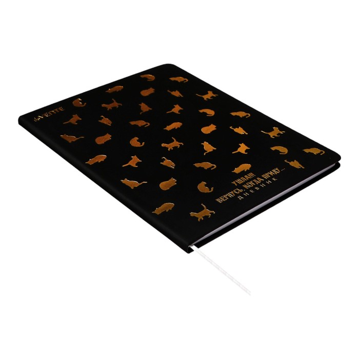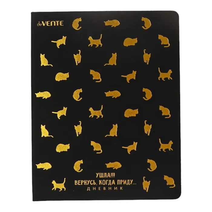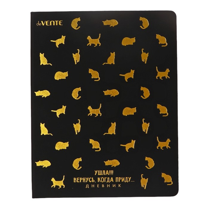 Дневник "deVENTE. Ушла! Вернусь, когда приду..." универсальный блок, 48 листов, белая бумага 80 г/м², печать в 1 краску, твердая обложка из искусственной кожи, тиснение фольгой, 1 ляссе.
