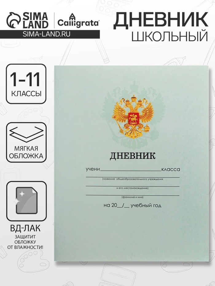 Дневник российского школьника для 5-11 классов, твёрдая обложка 7БЦ, глянцевая ламинация, 48 листов