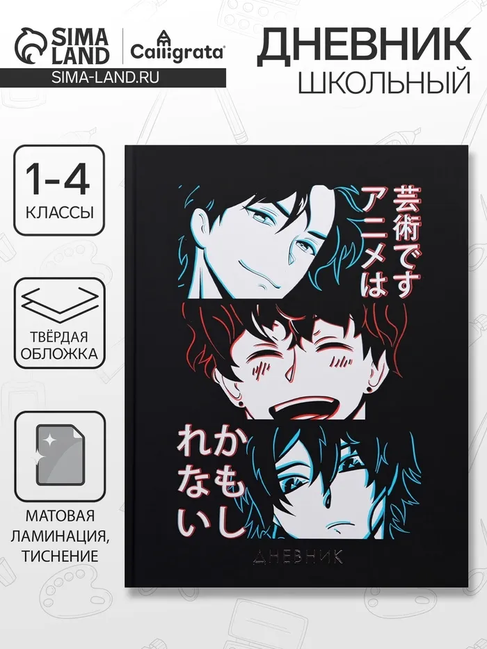 Дневник школьный для 1-4 классов, «Аниме. Коллаж», твёрдая обложка 7БЦ, матовая ламинация, тиснение фольгой, 48 листов — Характеристики
