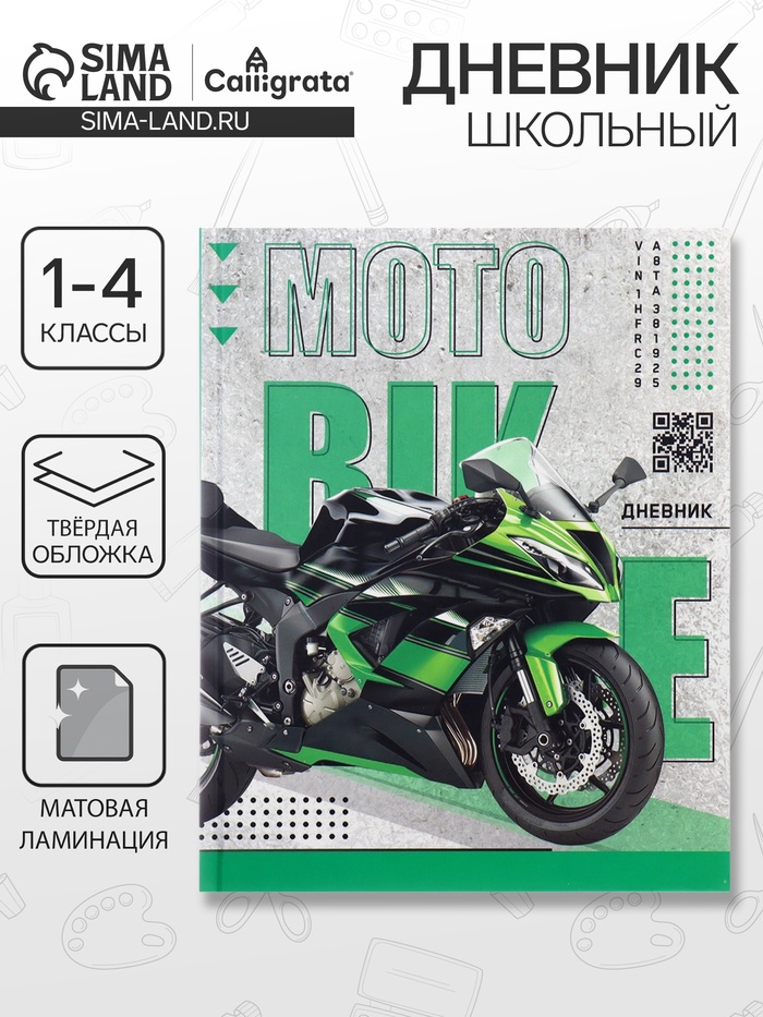 Дневник школьный для 1-4 классов, «Байк», твёрдая обложка 7БЦ, матовая ламинация, 48 листов — Характеристики