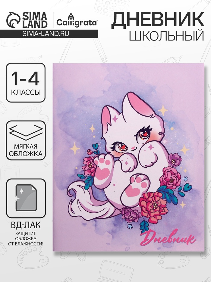 Дневник школьный для 1-4 классов, «Игривый котенок», мягкая обложка, 48 листов — Характеристики