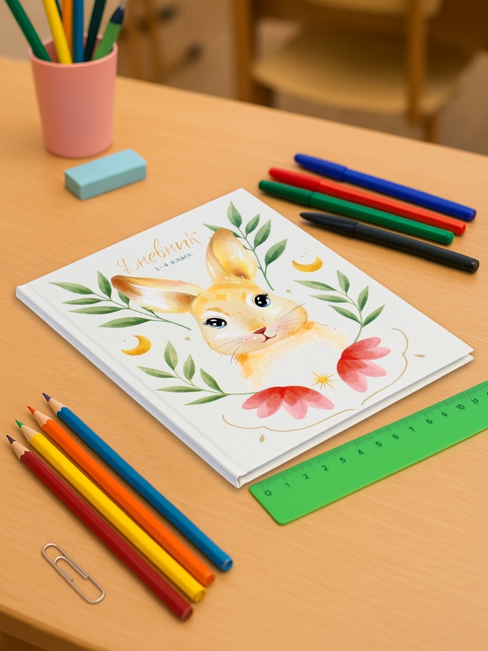 Дневник школьный для 1-4 классов, «Зайка», твёрдая обложка 7БЦ, матовая ламинация, 48 листов — Характеристики