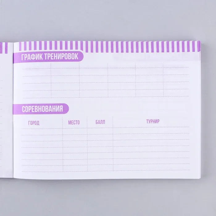 Удобный формат позволяет брать дневник на тренировки и соревнования. А яркий дизайн мотивирует не останавливаться на достигнутом.