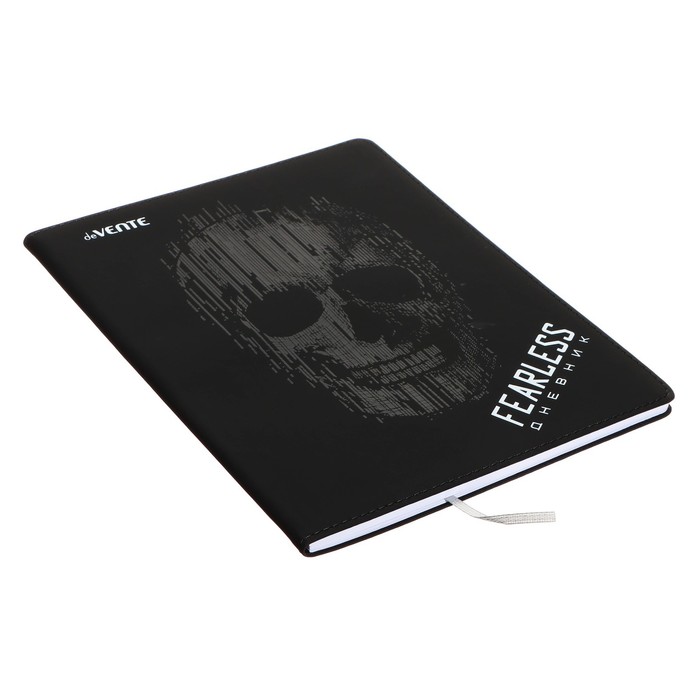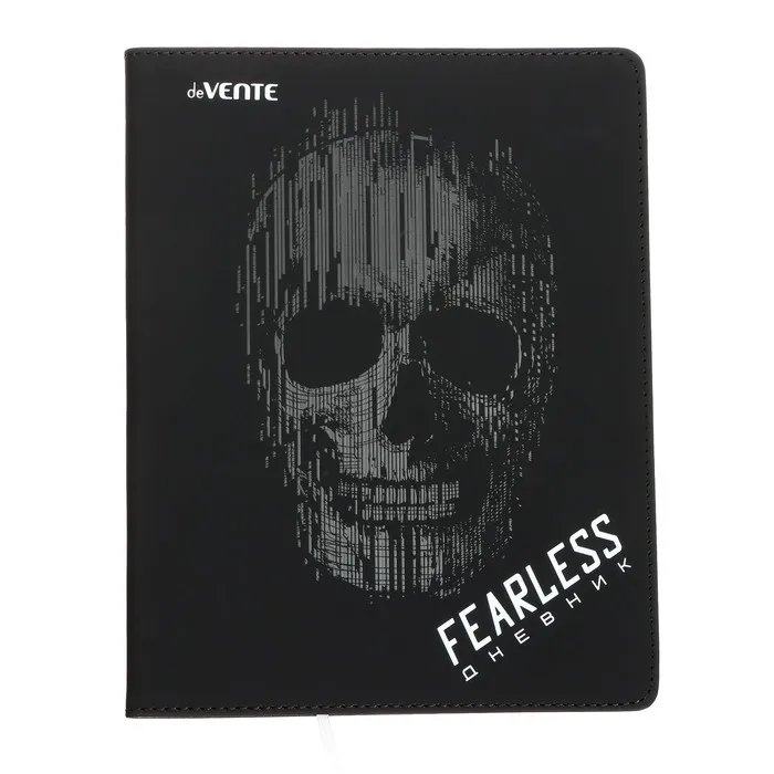 Дневник deVENTE. FEARLESS универсальный блок, офсет 1 краска, белая бумага 80 г/м2, гибкая обложка из искусственной кожи, шелкография, выборочный лак, отстрочка, 1 ляссе.