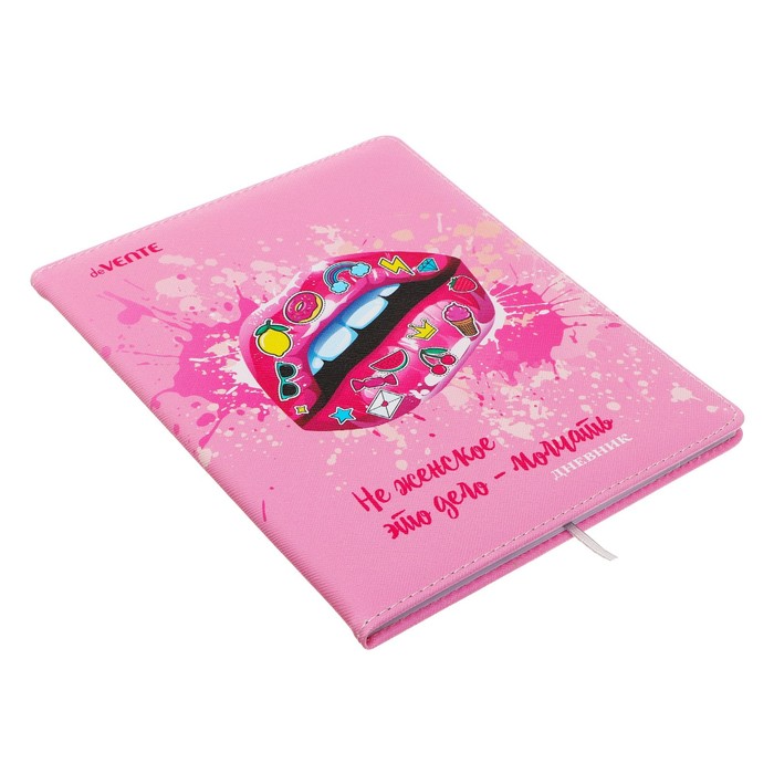 Дневник deVENTE. Lips, универсальный блок, 48 листов, белая бумага 80 г/м2, печать в 1 краску, твердая обложка из искусственной антивандальной кожи с поролоном, цветная печать, отстрочка, 1 ляссе.