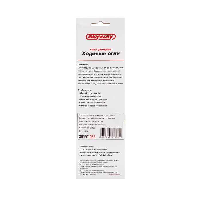Дневные ходовые огни Skyway, 12 В, COB диоды, 145×15 мм, набор 2 шт., S01501032 — Характеристики