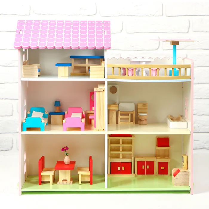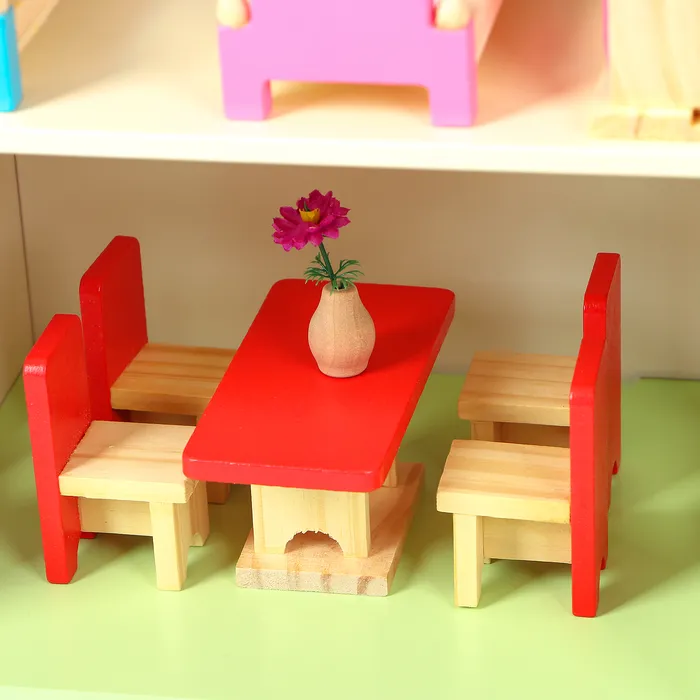 Розовый кукольный домик с мебелью станет идеальным подарком для маленькой мечтательницы. Этот компактный деревянный дом открывает простор для фантазии, позволяя создать уютное пространство для кукол с гостиной, спальней и кухней. Девочка сможет самостоятельно обустроить интерьер, расставляя мебель и аксессуары по своему вкусу.