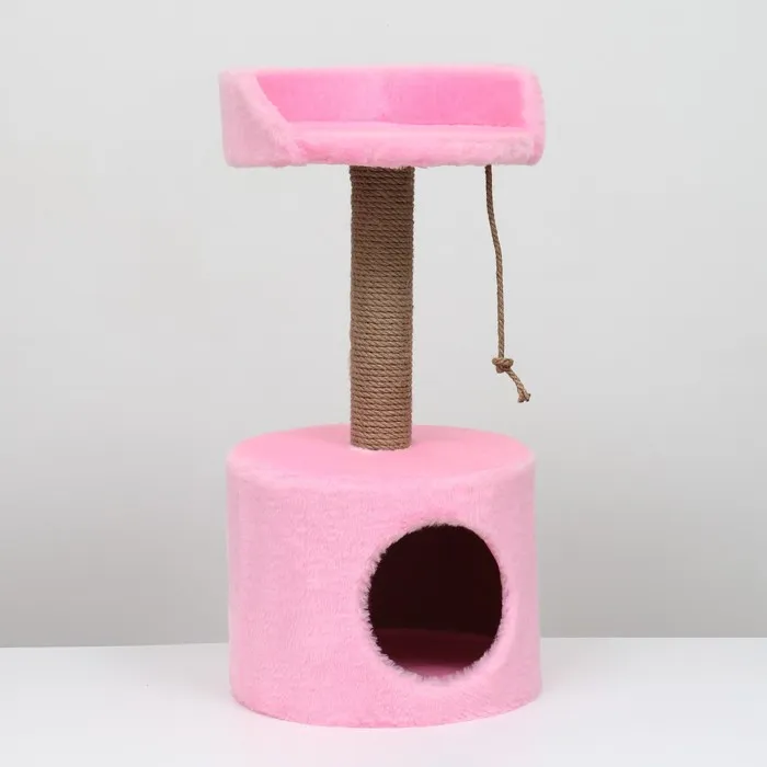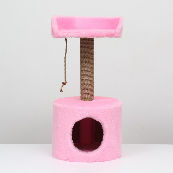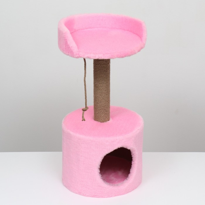 Дом для кошек с когтеточкой, с лежаком, круглый, 35 х 35 х 70 см, розовый