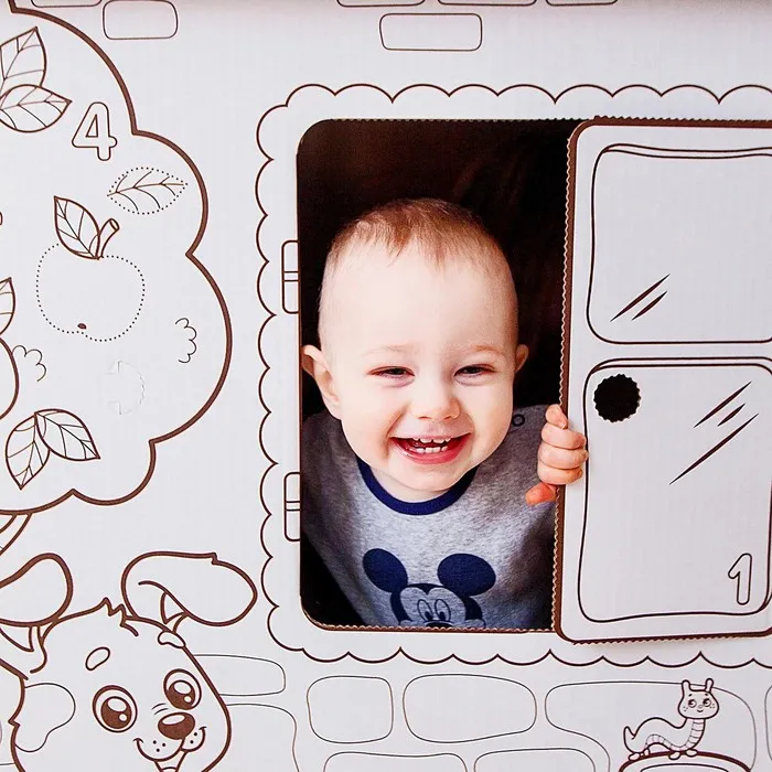 Домик из картона станет для ребёнка любимым местом для игр. Внутри малыш устроит себе уютный уголок, а снаружи раскрасит стены по собственному дизайну.