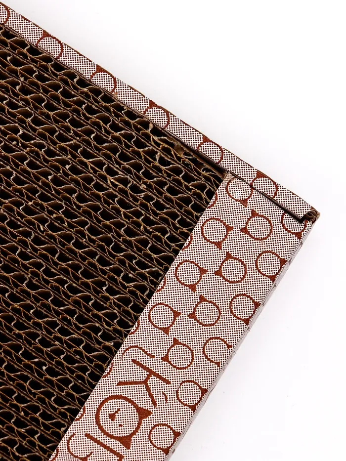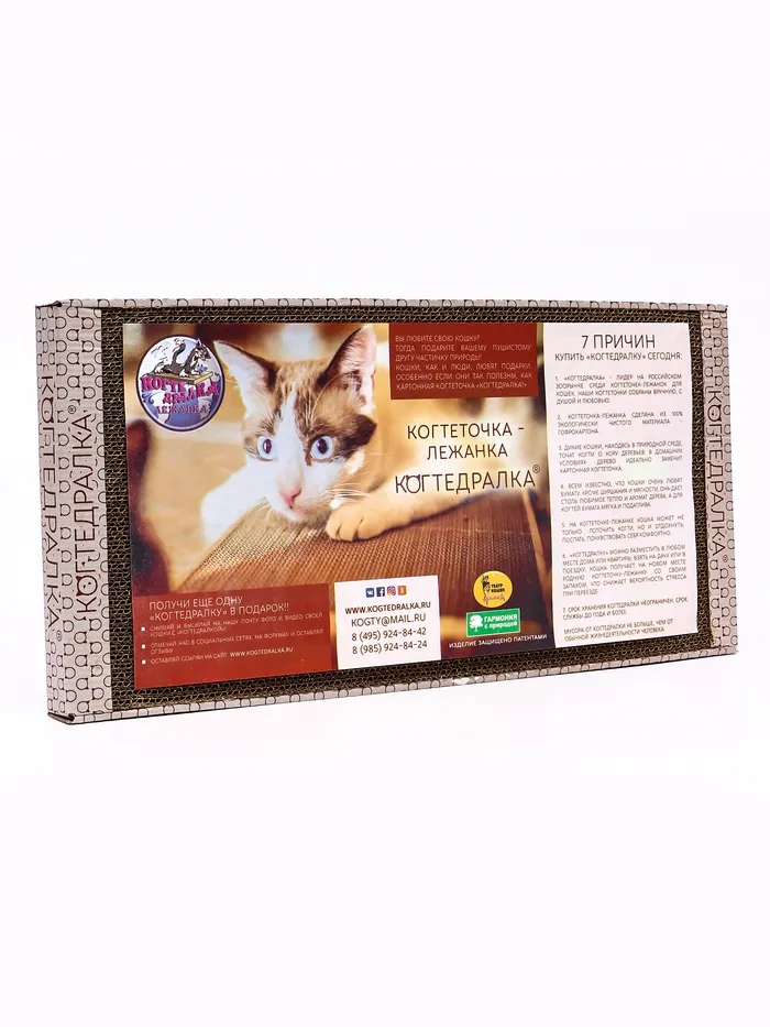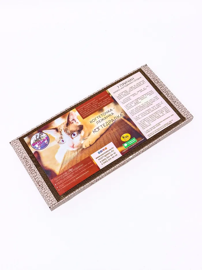 Он выполнен из гофрокартона, который изготовлен из природного материала - древесины и по своим свойствам очень на нее похож, чем и привлекают наших питомцев. Он достаточно плотен, чтобы выдержат острые коготки, и оптимально податлив, чтобы привлекать кошку.