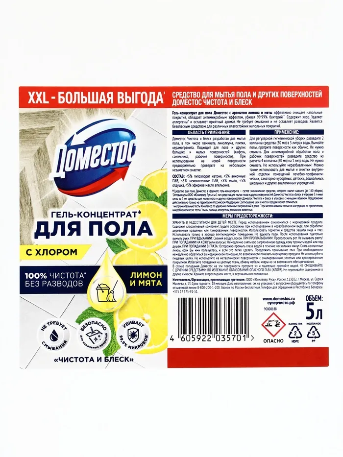 Надёжный помощник для генеральной и повседневной уборки. Средство эффективно удаляет загрязнения с любых твёрдых напольных покрытий, придавая им видимый блеск и ощущение свежести. Формула DOMESTOS очищает, освежает и помогает справляться с микробами, создавая комфорт и гигиеническую чистоту в каждом уголке дома или коммерческого помещения.