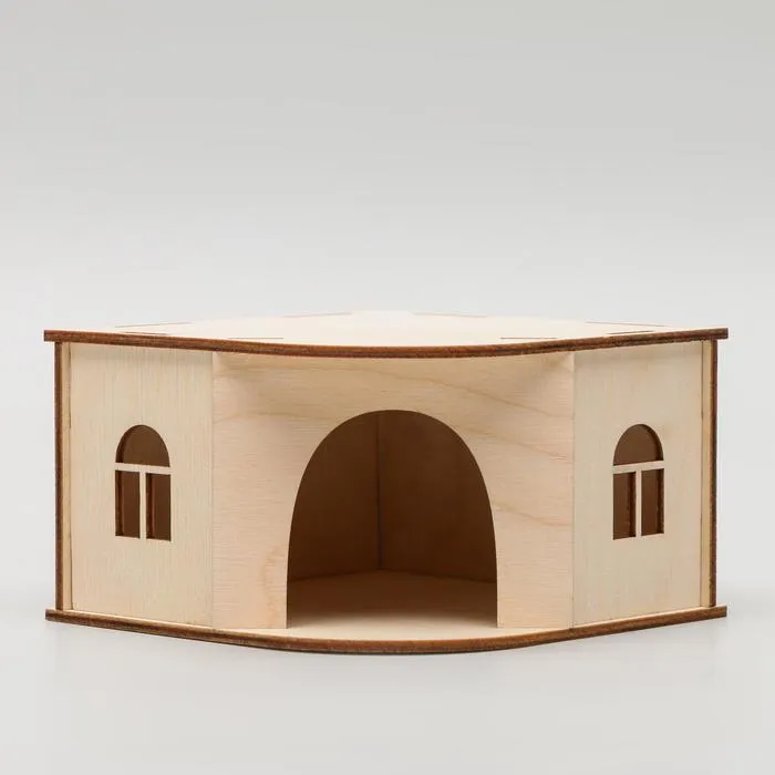 Компактный угловой домик для грызунов изготовлен из фанеры высшего сорта с ошкуренными краями без окрашивания. Во время сна в домике любимец чувствует себя в безопасности. Домик из фанеры - это экологично и безопасно, отличное место для скачек ваших домашних питомцев. Зоотовары - замечательный подарок. Грызуны нуждаются в повышенной активности. С таким домиком животному будет, чем заняться и где отдохнуть.
