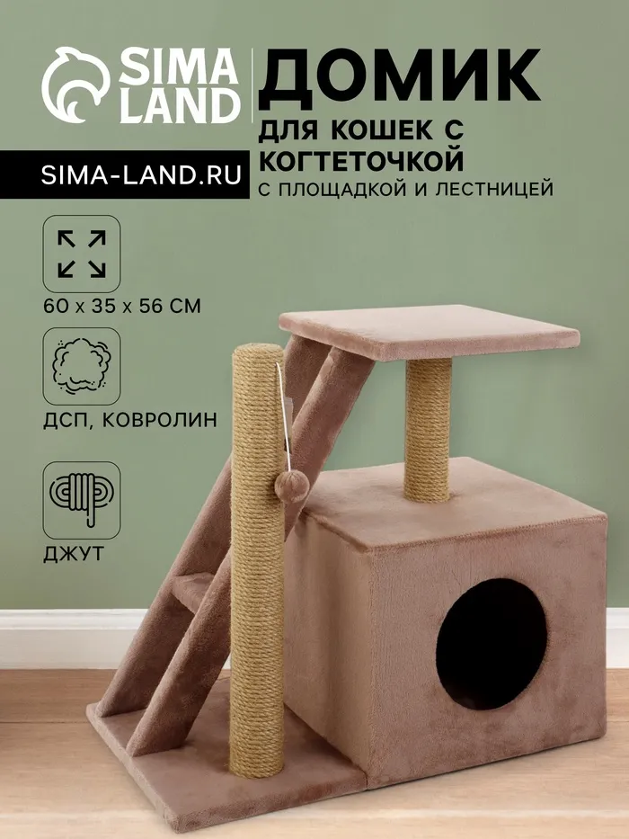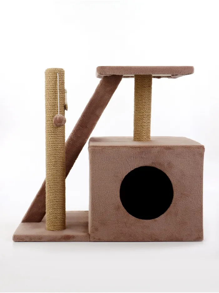Польза для кошки и хозяина: Комплекс отвечает природным потребностям питомца — лазать, точить когти и иметь собственное укрытие. Это не просто аксессуар, а вклад в её здоровье и ваше спокойствие. «Домосед» станет любимым местом вашей кошки, где она сможет отдыхать, играть и чувствовать себя в безопасности.