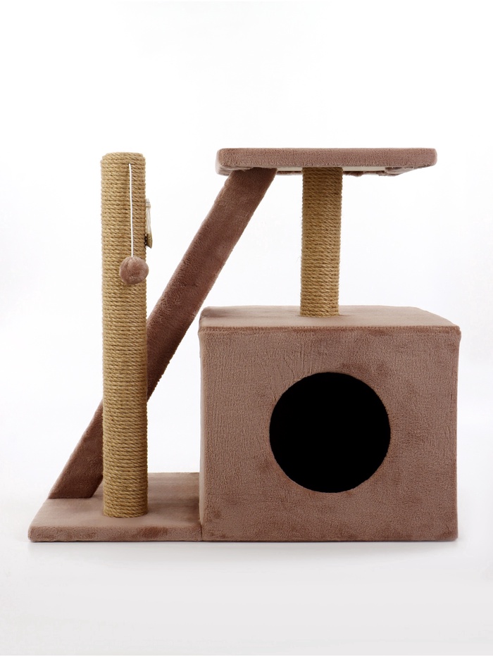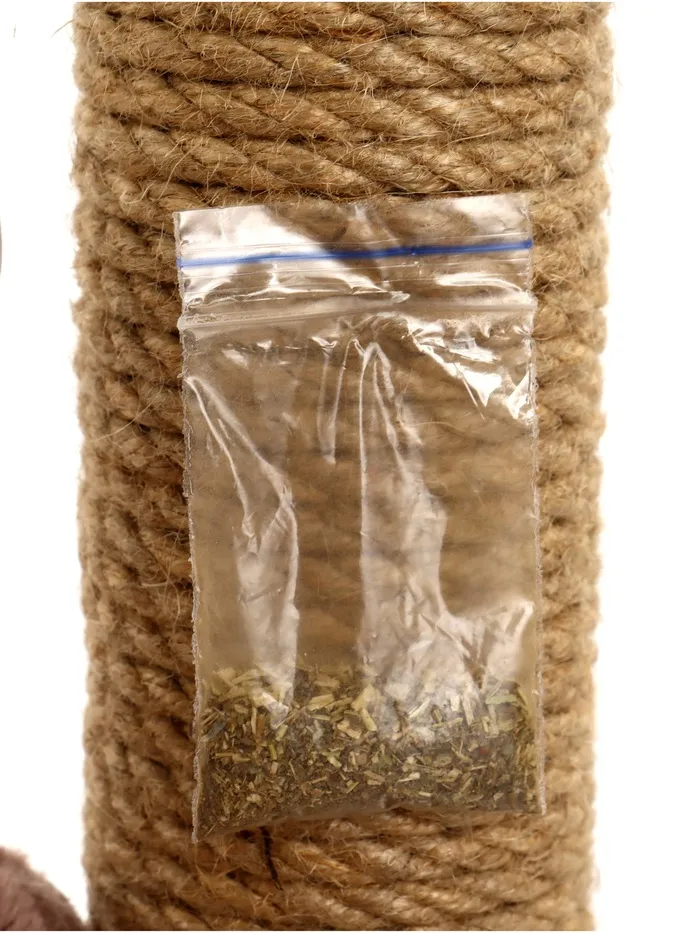 - Надёжная когтеточка: Вертикальная стойка обтянута прочным сизалевым шнуром. Это естественное и удобное место для точки когтей, которое помогает сохранить мебель в доме.
