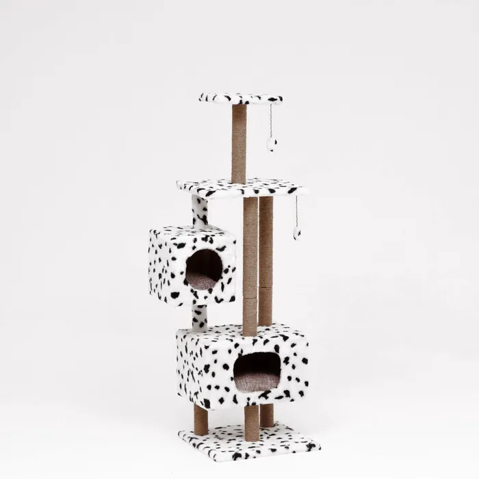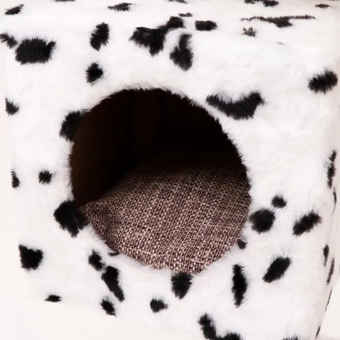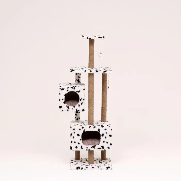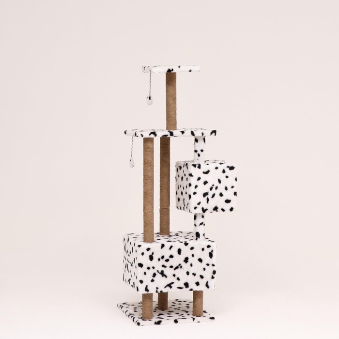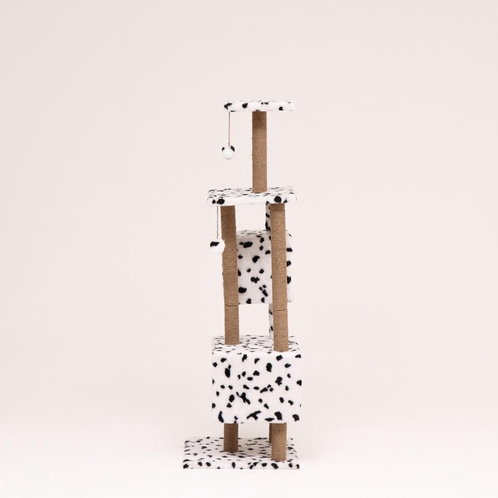 Превратите уголок вашего дома в настоящий рай для вашего питомца с этим многофункциональным комплексом для кошек. Этот домик-когтеточка, высотой 173 см, выполнен в оригинальном дизайне с «далматинским» принтом, что делает его не только удобным для питомца, но и стильным элементом интерьера.