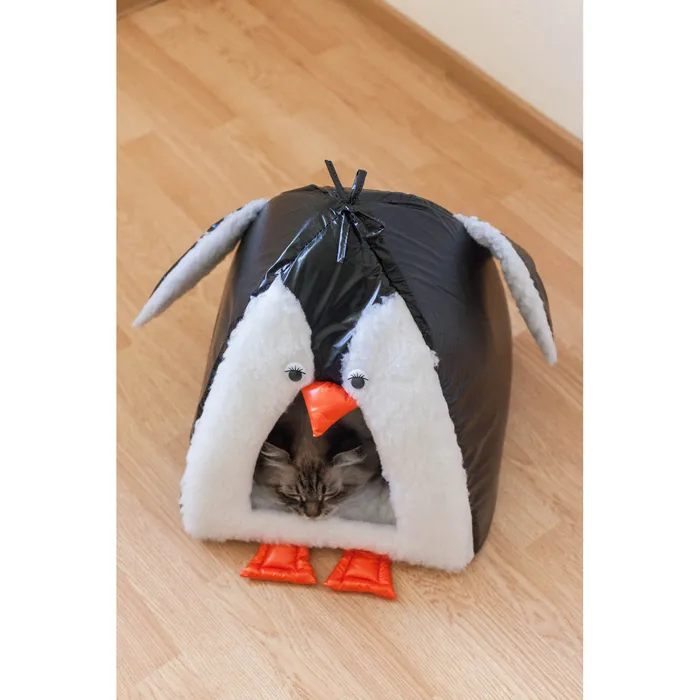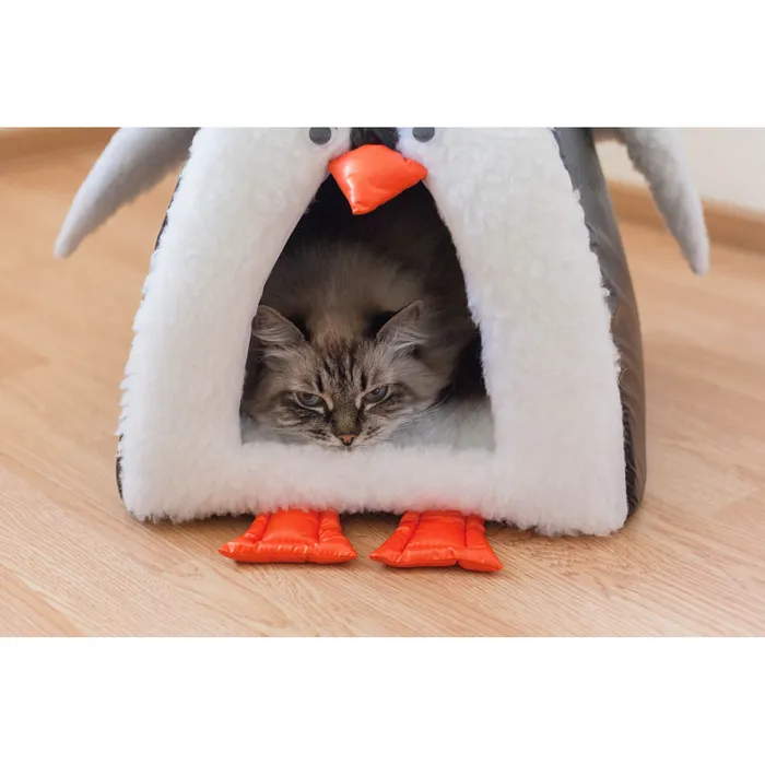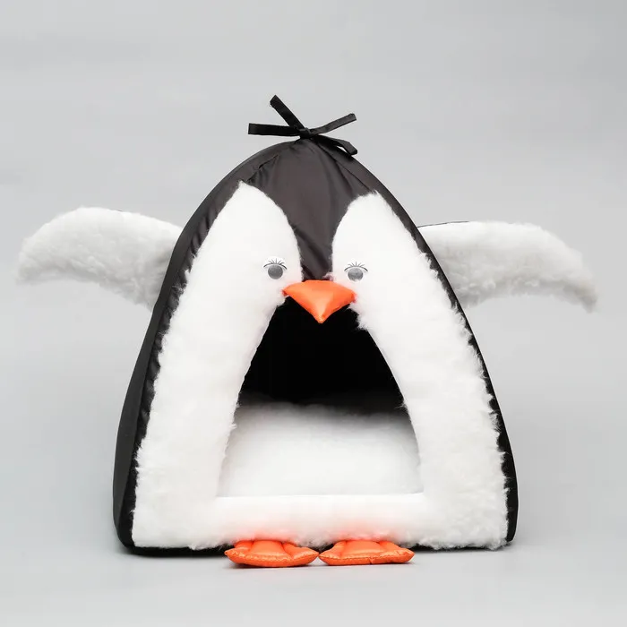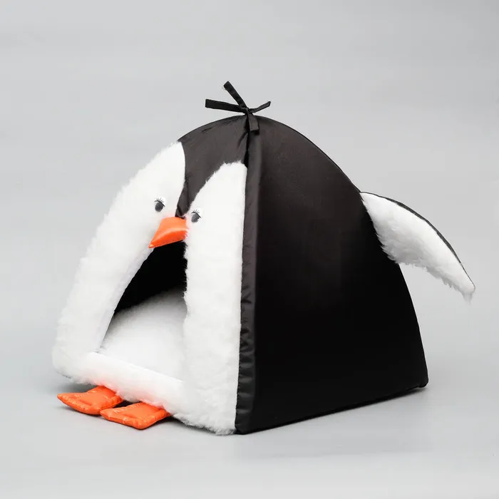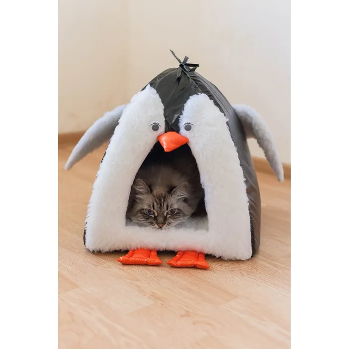 Домик обладает гибкой конструкцией, форму домик держит благодаря поролону на боковых частях. Он выполнен из качественных материалов, которые обеспечивают хорошую вентиляцию и защиту от холода, а внутри дома находится подушка-лежанка.