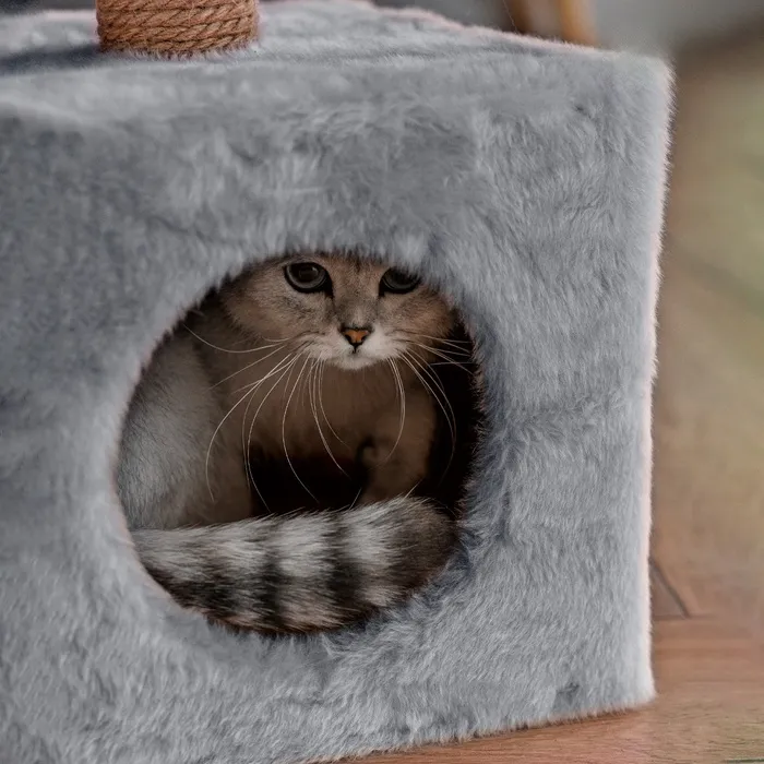 Домик-когтеточка для кошек обеспечивает пространство для отдыха, игры и точения когтей.