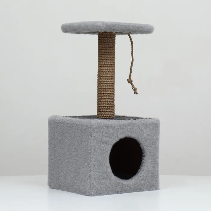 Домик для животных, с когтеточкой и полкой, джут, 32 х 32 х 64 см, серый
