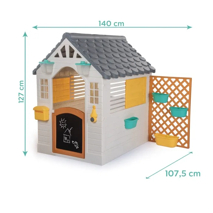 - Стильный дизайн: Яркие оттенки и привлекательная форма превращают домик в украшение участка. Дети с удовольствием будут проводить здесь время, придумывая новые сценарии игр.