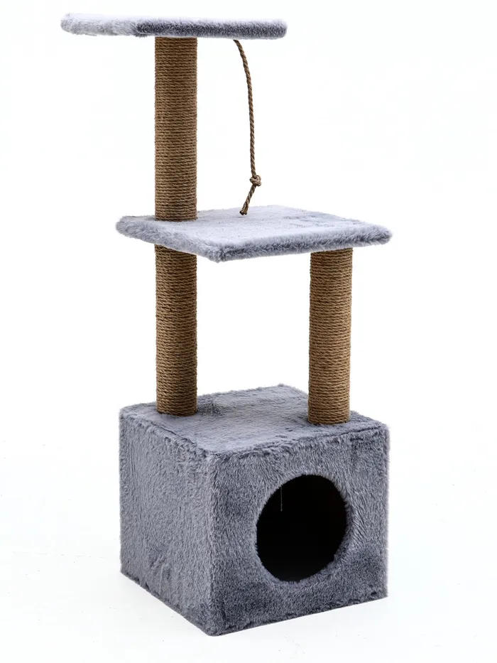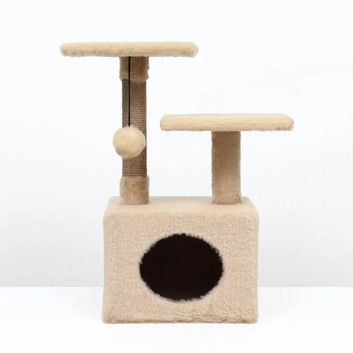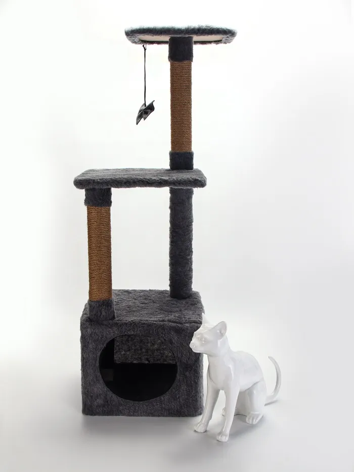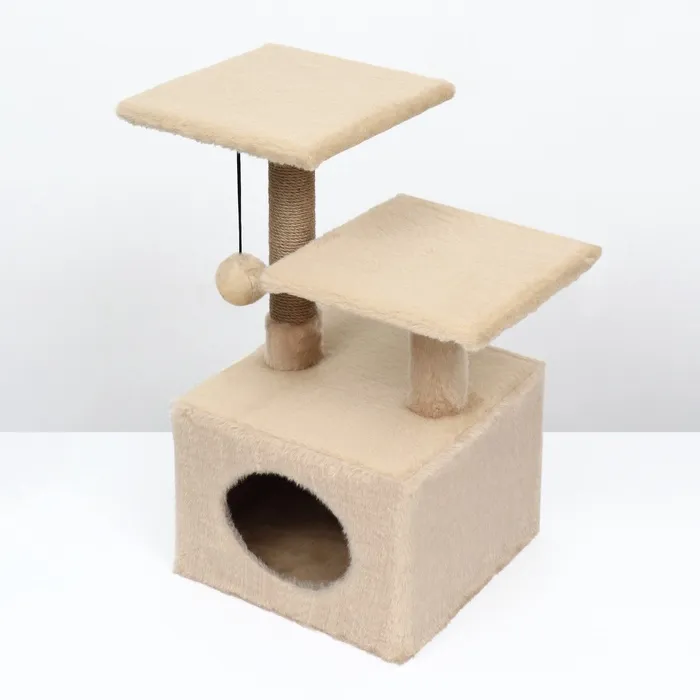 Компактный домик с размерами 53 х 35 х 65 см предлагает оптимальное пространство для отдыха и игр. Две квадратные полки позволяют кошке выбрать удобное место для наблюдения за окружающей средой, а встроенная когтеточка из джута надежно защитит вашу мебель от когтей.