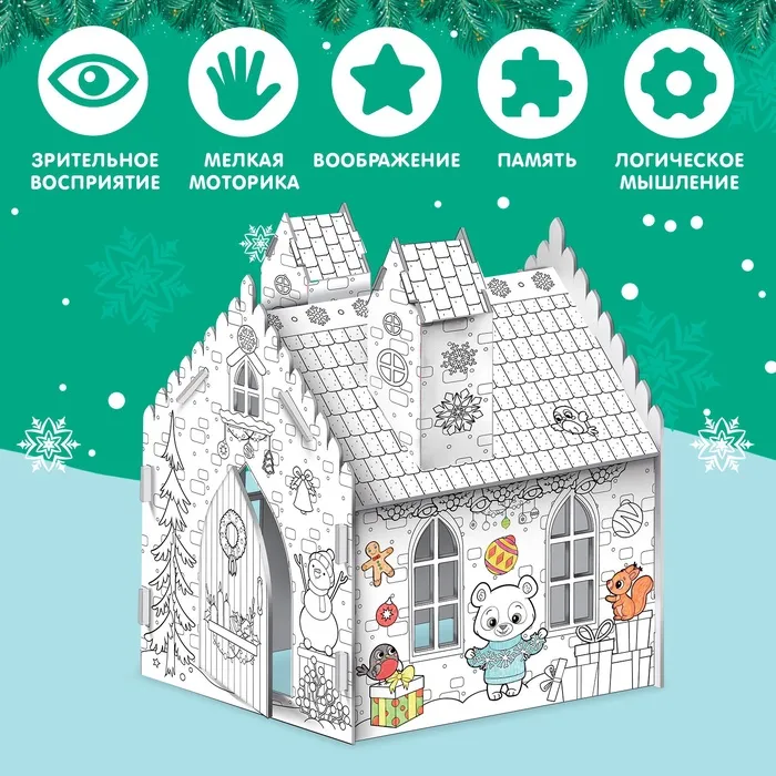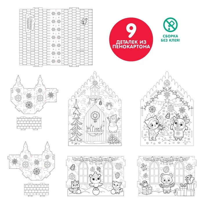 Домик-раскраска 3 в 1 «Новогодние истории», 5 фломастеров, 9 деталей — Характеристики