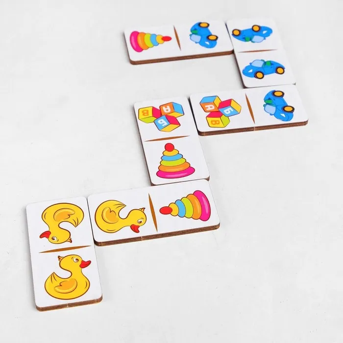 Специально для малышей мы разработали свой вариант этого интересного развлечения. Детское домино имеет яркие рисунки определённой тематики, которые помогут ребёнку обучаться в игровой форме.