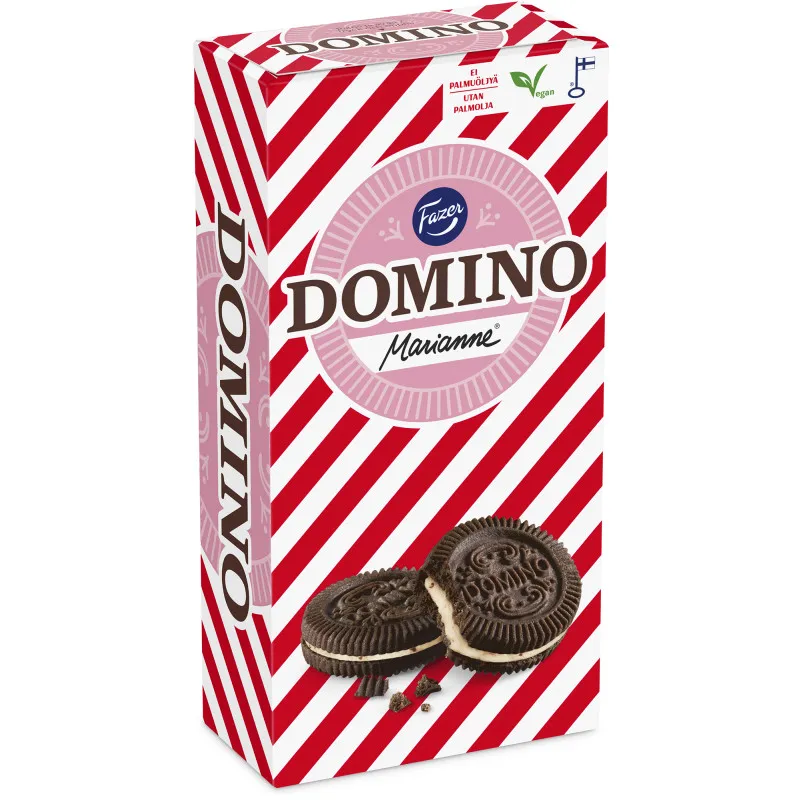 Domino Marianne – это сочетание двух настоящих классических вкусов! Восхитительное шоколадное печенье Domino с начинкой из аппетитной мятной крошки Marianne. Подходит как для повседневного удовольствия, так и для праздничного стола. Подходит для веганов. Упаковка: 350 г. Проверьте информацию на упаковке перед использованием.