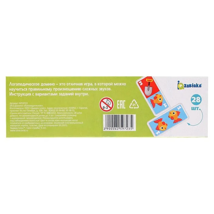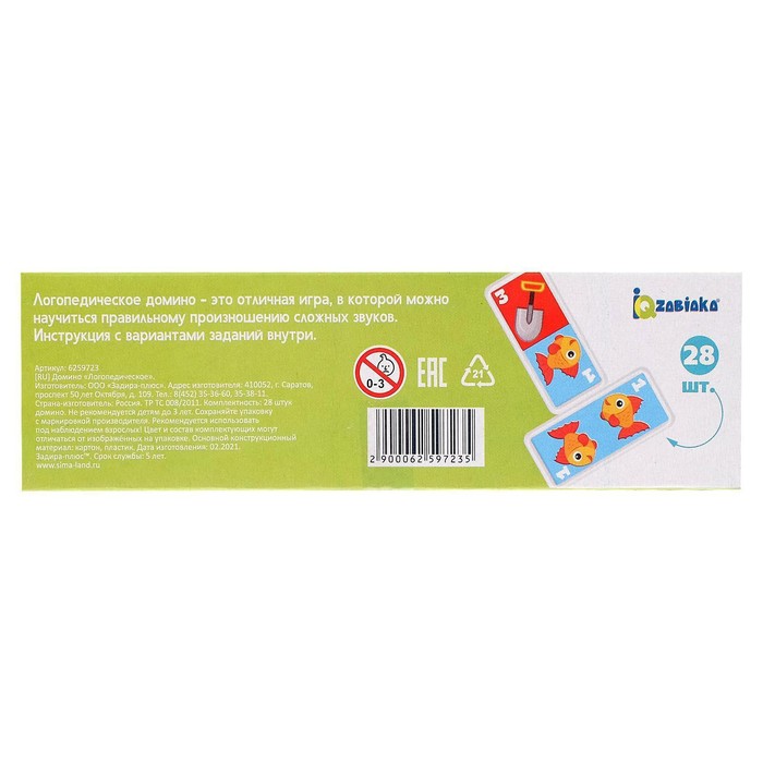 Домино «Логопедическое: звуки Р, Л», пластик — Характеристики