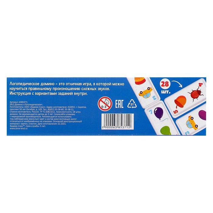 Домино «Логопедическое: звуки Ж, Ш», пластик — Характеристики
