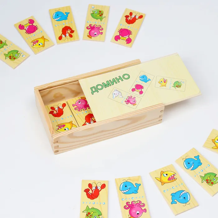 Деревянное домино «Подводный мир» — это увлекательная настольная игра, которая знакомит детей с обитателями морских глубин. Игра рассчитана на 2–4 игроков, что делает её отличным выбором для семейного досуга или игр с друзьями.