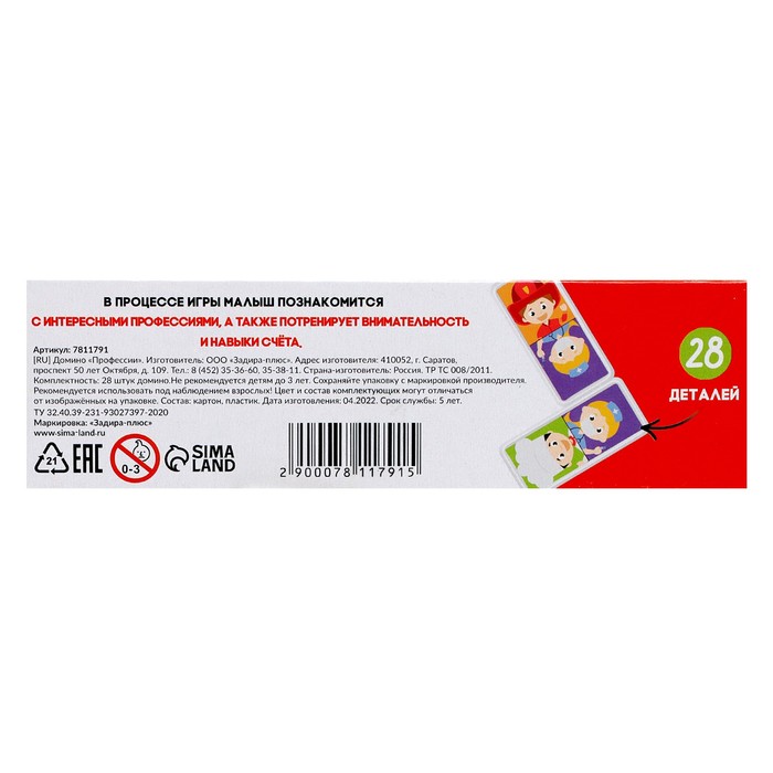 Домино «Профессии», пластик, 28 деталей — Характеристики