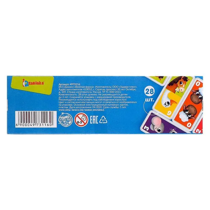 Домино «Весёлая ферма», пластик, 28 деталей — Характеристики