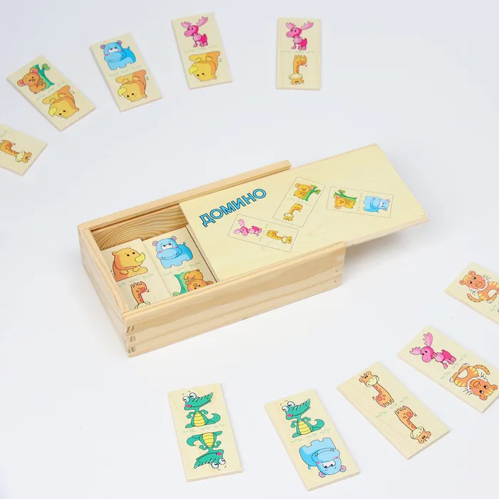 Деревянное домино «Зверята» — это увлекательная настольная игра, которая знакомит детей с миром животных. Игра рассчитана на 2–4 игроков, что делает её отличным выбором для семейного досуга или игр с друзьями.