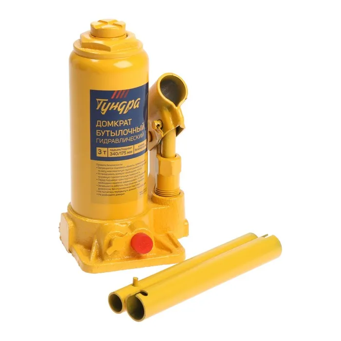 Домкрат бутылочный гидравлический ТУНДРА, второй клапан, подъем/подхват 340/175 мм, 3 т — Характеристики