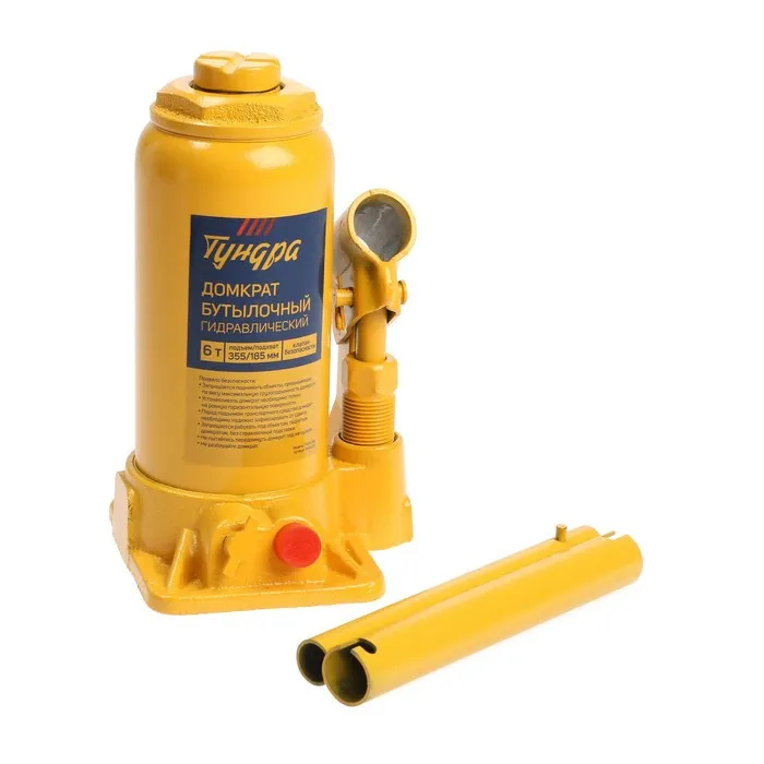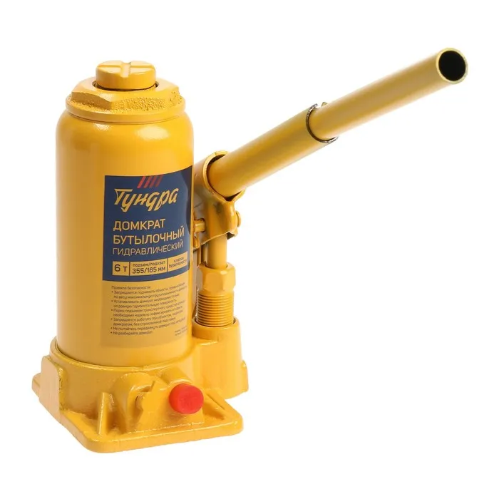 Домкрат бутылочный гидравлический ТУНДРА, второй клапан, подъем/подхват 355/185 мм, 6 т — Характеристики