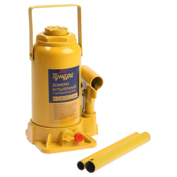 Домкрат бутылочный гидравлический ТУНДРА, второй клапан, подъем/подхват 395/210 мм, 12 т — Характеристики