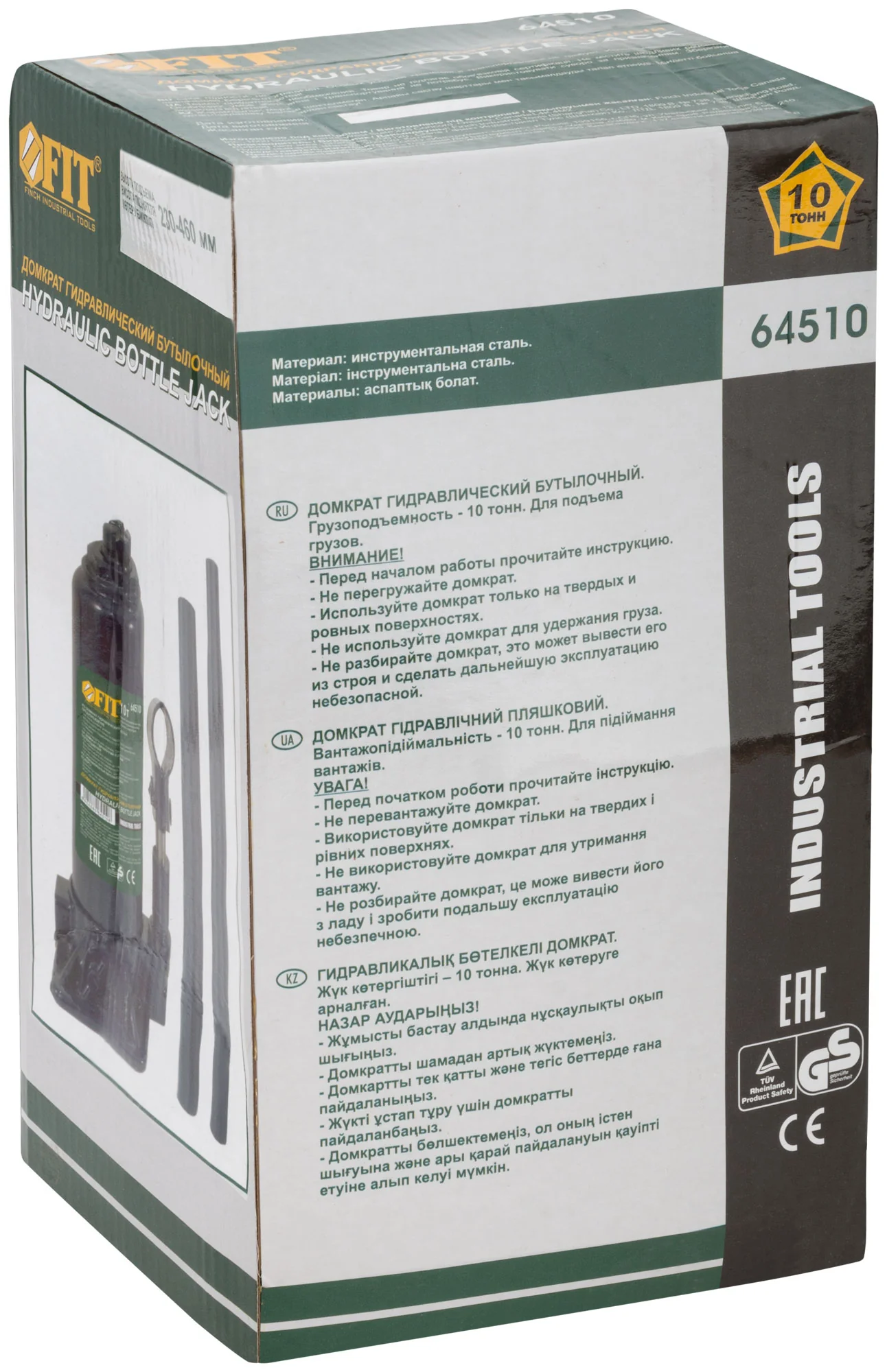 Если вы ищете надежный инструмент для подъема тяжелых грузов в гараже, автомастерской или на строительной площадке, домкрат гидравлический бутылочный FIT на 10 тонн станет отличным выбором. Он обеспечивает уверенный подъем и удержание грузов, что особенно важно при ремонте и техническом обслуживании автомобилей.