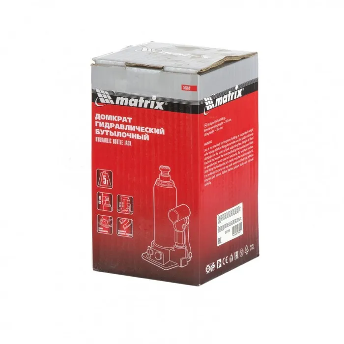 Домкрат гидравлический MATRIX 50764, бутылочный, 5 т, высота подъема 197-382 мм — Характеристики