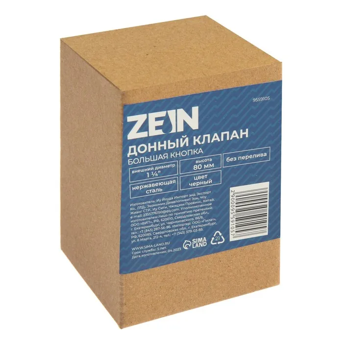 Донный клапан ZEIN B3, 1 1/4", корпус пластик, малая кнопка, нержавеющая сталь, без перелива