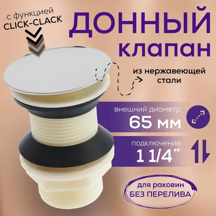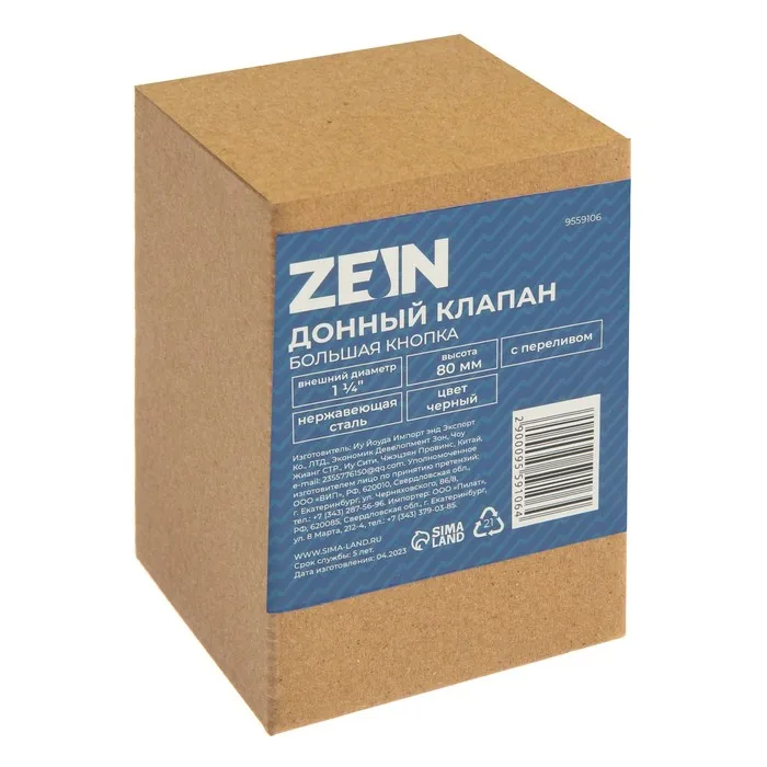 Донный клапан ZEIN engr, большая кнопка, с переливом, нержавеющая сталь, черный — Характеристики